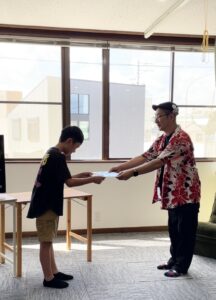 素敵でShow(賞)を受賞したりょうたくん(小6)には、コンテスト当日表彰式を行いました。