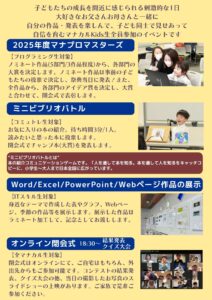 また、お子さんを通して、後日学びの祭典のチラシもお渡しします。そちらも合わせてご覧ください。
