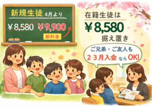 なお、現在在籍中の生徒様につきましては、これまで通り据え置きといたします。