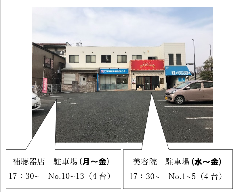 こちらの駐車場は当教室の共同駐車場ではなく、美容室および補聴器店、(株)スミヨシの専用駐車場です。
